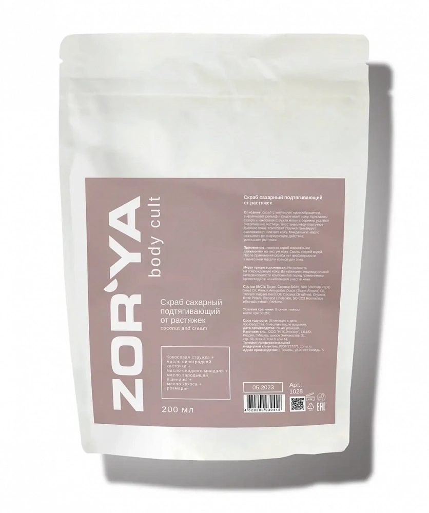 Скраб сахарный подтягивающий от растяжек coconut and cream ZOR`YA body cult 200 мл